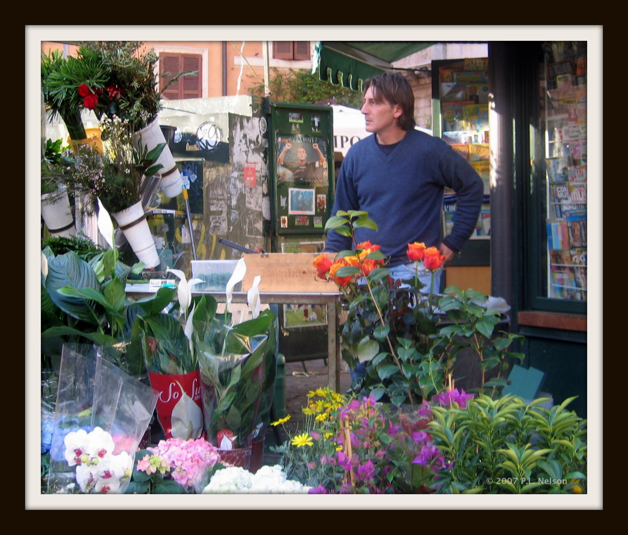 This was taken during our March 2007 Rome trip. A flower vendor on the Piazza Navona.